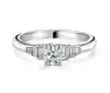 Introducing our exquisite 18ct white gold ring, a statement piece that beautifully combines classic and contemporary elements. This luxurious ring features a central round brilliant cut diamond, expertly secured in a four-claw setting to maximize its brilliance and visibility. Enhancing the elegance of this centrepiece, the ring's shoulders are adorned with sleek, tapered baguette cut diamonds, adding a touch of sophistication and unique flair. Crafted from premium 18ct white gold, this ring boasts a polished finish that complements the sparkle of the diamonds, making it perfect for engagements, special occasions, or as a standout addition to any fine jewellery collection. Elevate your style with this stunning piece, designed to captivate and charm with its timeless beauty.