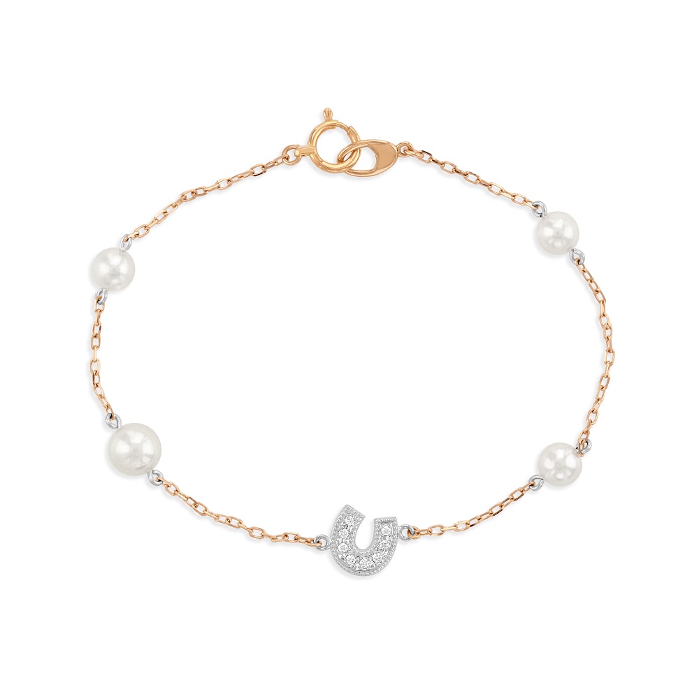 18ct Rose Gold Akoya Pearl and Diamond Horseshoe Bracelet