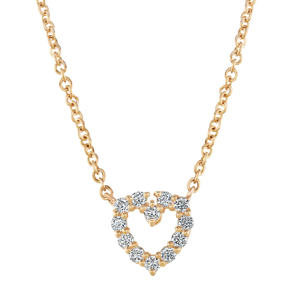Our 18ct rose gold open heart diamond pendant is a captivating piece that combines timeless elegance with a touch of modern luxury. This exquisite pendant features an open heart design, beautifully embellished with sparkling diamonds, totalling 0.25 carats. Each diamond is meticulously set to enhance the heart's delicate silhouette and maximize its brilliant shimmer.