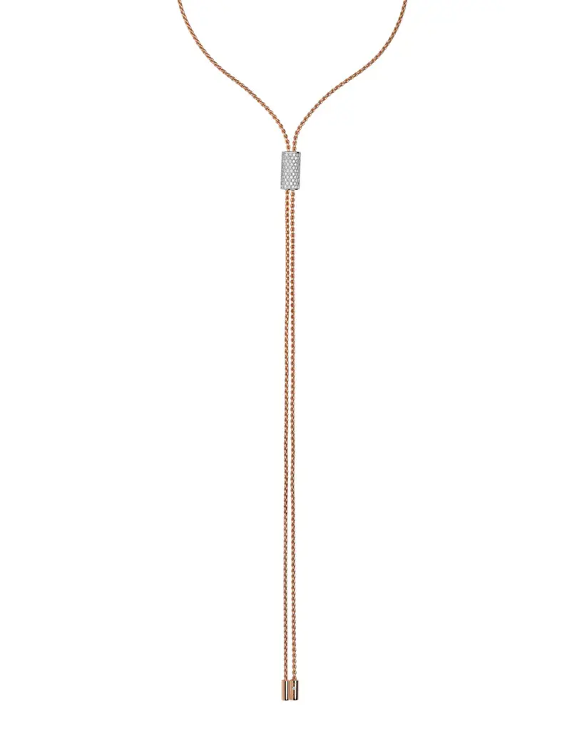Reprising a Fope design classic in the lightest and slimmest gold mesh of Fope’s entire range, Aria is especially light to wear. Like a breath of fresh Spring air, the simplicity and versatility of this collection appeals to younger generations. This necklace with diamond pavé slider allows the wearer to adjust to a length that suits any outfit or occasion.