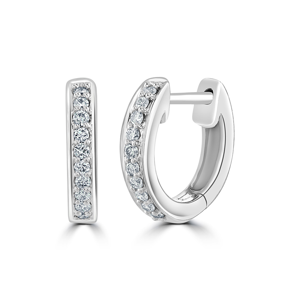 Our exquisite collection of 18ct white gold hoop earrings, each finely crafted piece featuring a secure hinged closure. These elegant hoops are adorned with ten sparkling round brilliant cut diamonds, summing up to a total diamond weight of 0.13ct. Perfect for adding a touch of luxury to any outfit, our diamond hoop earrings are a timeless choice for both day and evening wear.