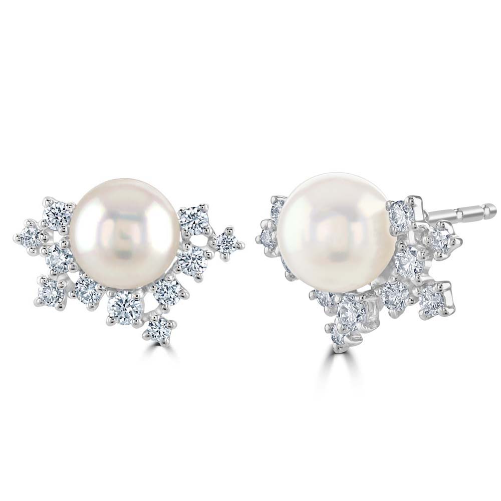 18ct White Gold Akoya Cultured Pearl and Diamond Earrings