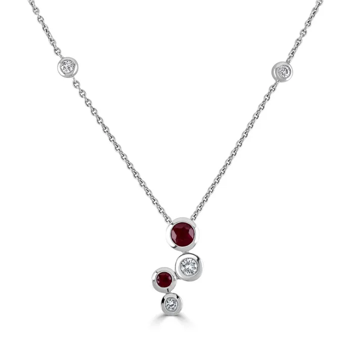 18ct White Gold Ruby and Diamond Bubble Pendant