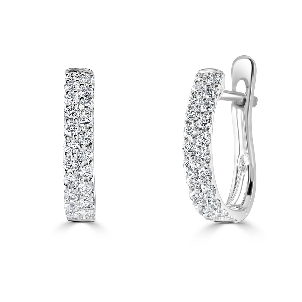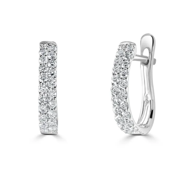 Featuring a secure hinged closure, these earrings ensure both comfort and safety for all-day wear. The pristine white gold setting enhances the luminosity of the diamonds, creating a striking contrast that is both eye-catching and timeless. Perfect for sophisticated evenings or as a luxurious daily accessory, these white gold diamond hoop earrings are essential for anyone seeking to add a touch of glamour to their style.