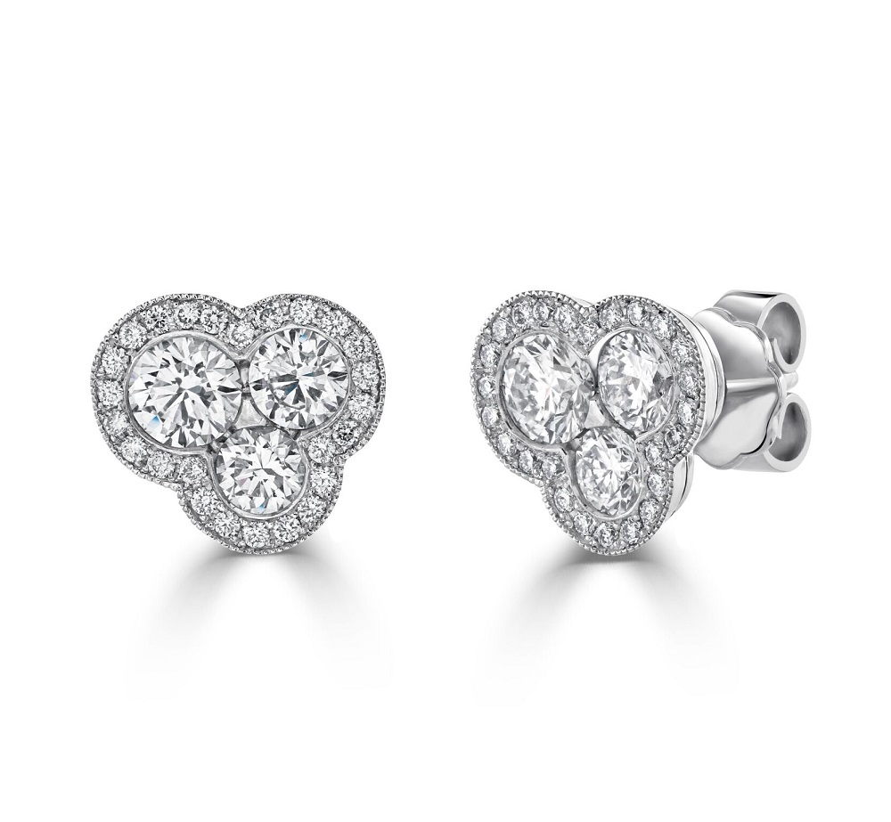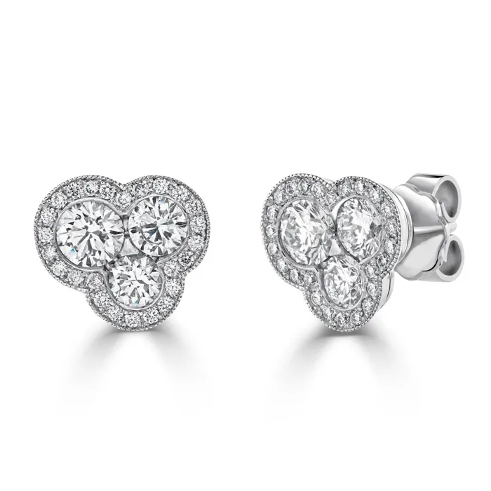 18ct White Gold Diamond Trefoil Earrings