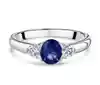 Understated elegance meets contemporary design in this beautifully crafted trilogy ring, set in 18ct white gold. At its centre lies a 0.66 carat oval-cut sapphire, securely held in a sleek part rubover setting that enhances its deep, velvety blue hue with a modern edge. Flanking the sapphire are two round brilliant-cut diamonds, with a combined weight of 0.24 carats, each set to maximise brilliance while maintaining a clean, fluid silhouette. The rubover detailing adds a touch of sophistication and durability, making this ring as practical as it is beautiful. A refined choice for those who appreciate subtle luxury and timeless design.