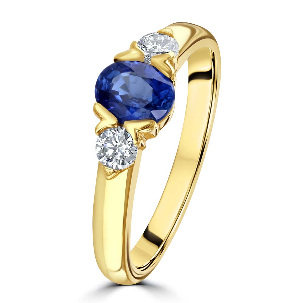 18ct Yellow Gold Sapphire and Diamond Trilogy Engagement Ring