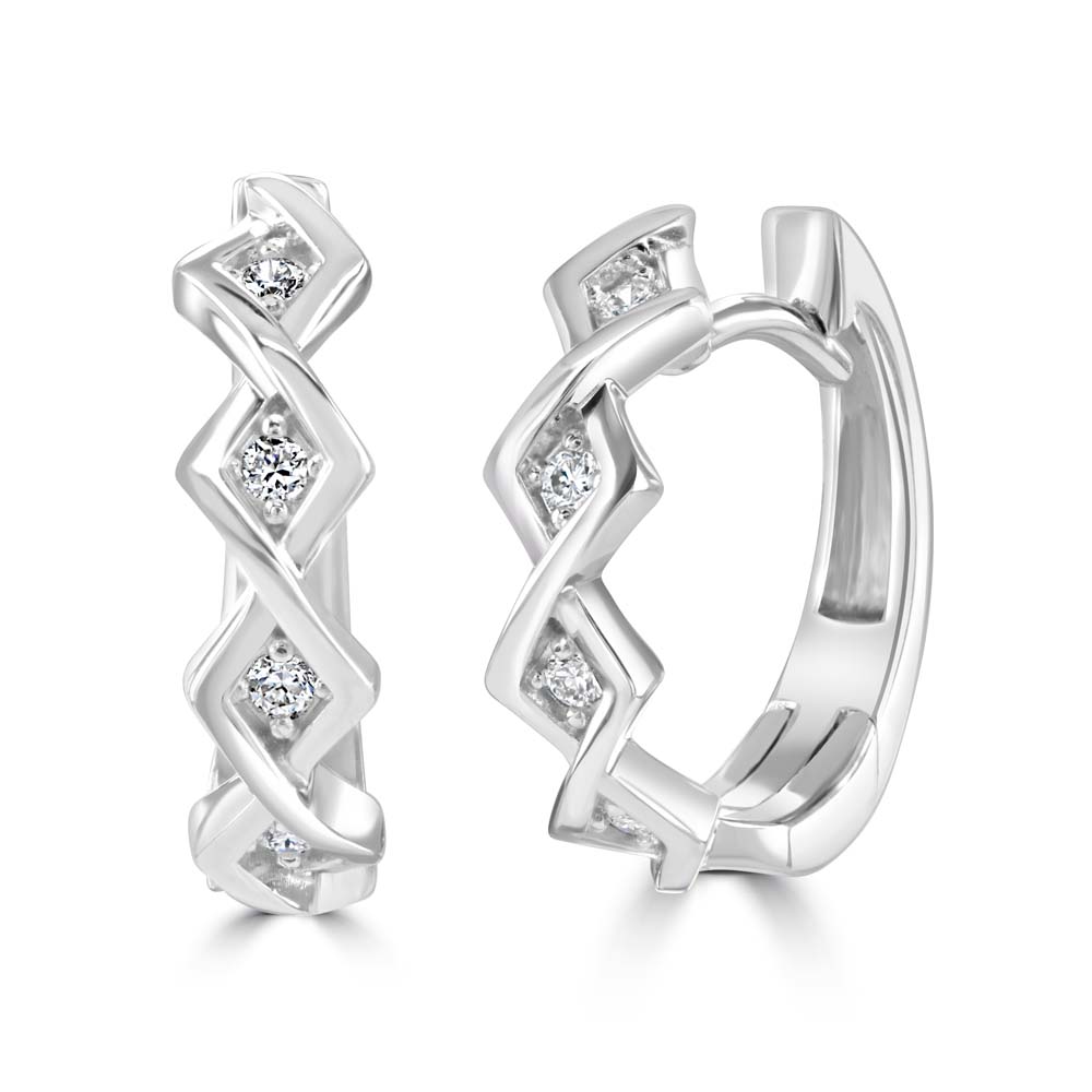 Enhance your elegance with these stunning 18ct white gold hinged round hoop earrings. Each earring features four round brilliant-cut diamonds, intricately woven into the white gold setting. With a total diamond weight of 0.08ct, these earrings offer a subtle yet captivating sparkle. The cool, lustrous tone of the white gold beautifully complements the radiant diamonds, creating a timeless and sophisticated look. The hinged design ensures a secure and comfortable fit, making these earrings perfect for both everyday wear and special occasions. Whether you're dressing up for a formal event or adding a touch of luxury to your daily attire, these earrings are the perfect accessory to elevate any outfit.