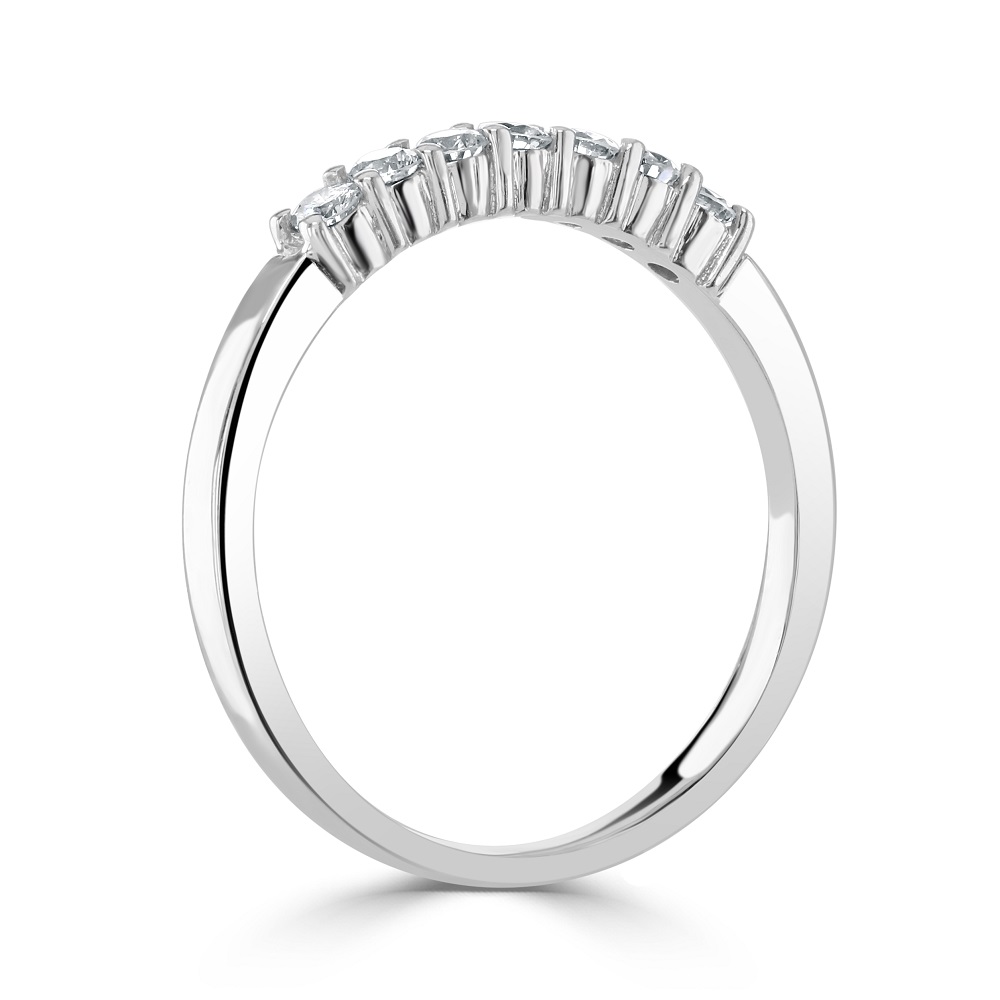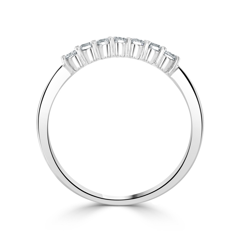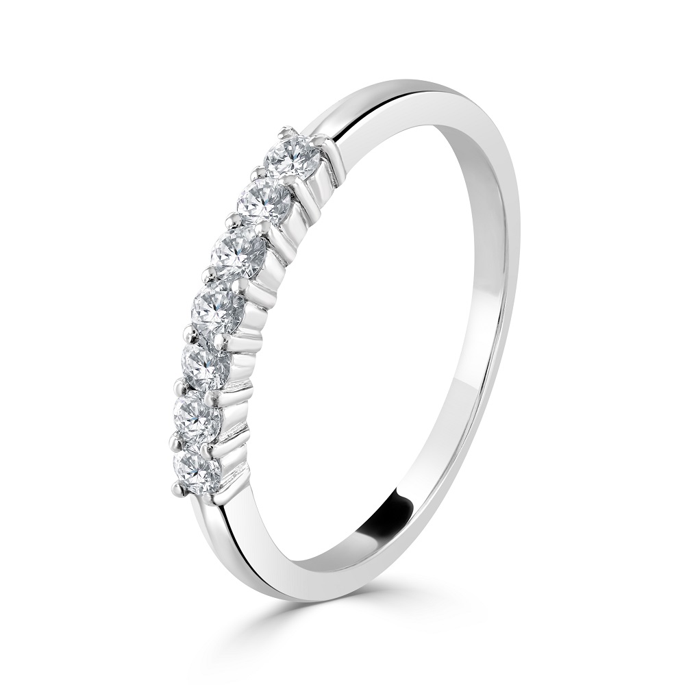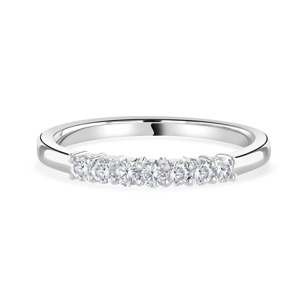 Celebrate everlasting love with our stunning 18ct white gold eternity ring, exquisitely claw-set with seven round brilliant cut diamonds. This elegant ring features a total diamond weight of 0.25ct, each diamond chosen for its exceptional sparkle and clarity, ensuring a radiant shine that complements any hand.