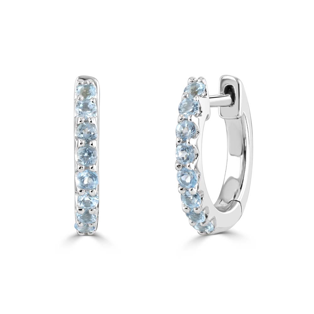 Enhance your style with our captivating 18ct White Gold Hinged Hoop Earrings, elegantly claw-set with eight round blue topaz stones. These stunning earrings boast a total blue topaz weight of 0.45ct, providing a vibrant splash of colour and sophisticated sparkle. Ideal for any occasion, from casual outings to more formal events, these hoop earrings offer a secure fit with their hinged design.