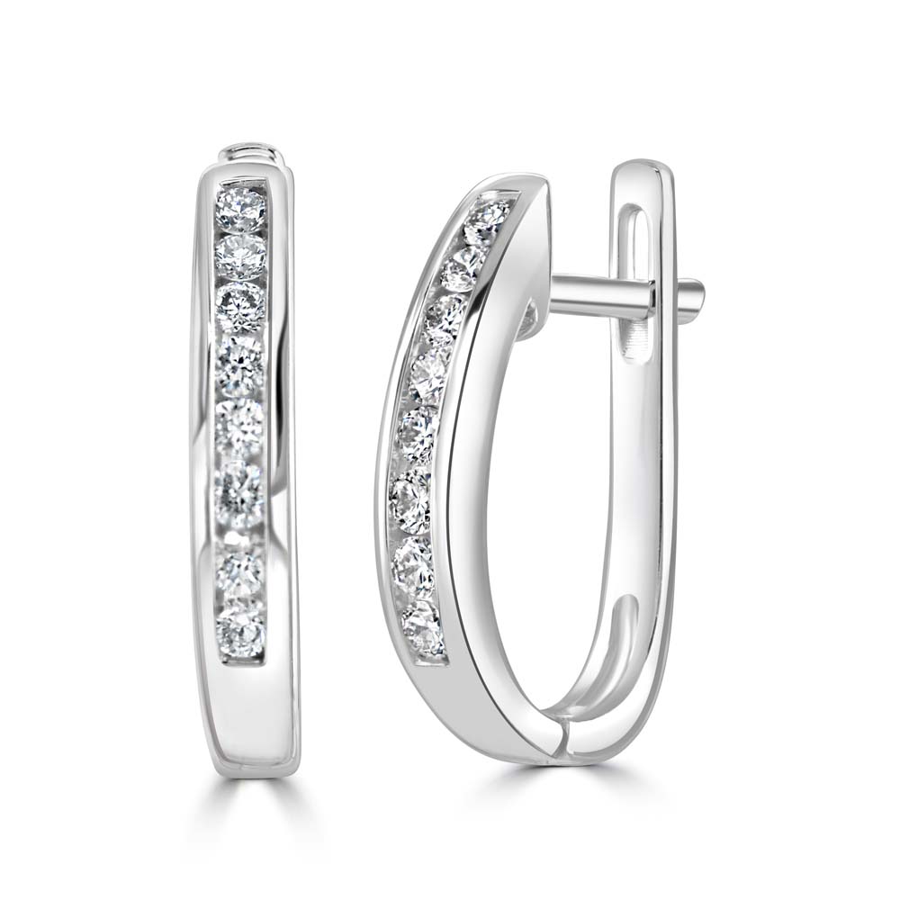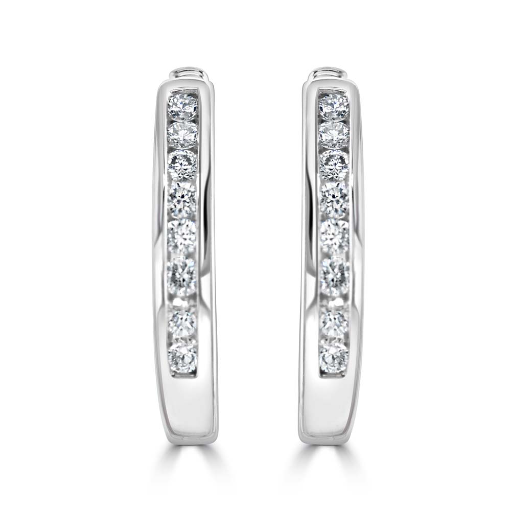 Elevate your accessory collection with our elegant 18ct white gold oval hinged hoop earrings. Each earring in this refined pair features a channel setting, perfectly housing eight round brilliant-cut diamonds, ensuring they catch the light from every angle. With a combined total of 16 diamonds, these earrings sparkle with a total weight of 0.30 carats, offering just the right amount of radiance to enhance any look. Crafted from premium 18ct white gold, the earrings showcase a polished finish that complements the brilliance of the diamonds. The oval shape and hinged design not only add a modern twist to the classic hoop but also ensure a secure and comfortable fit for all-day wear. Ideal for both special occasions and everyday elegance, these diamond hoop earrings are a timeless addition to any jewellery lover's collection. They provide a touch of luxury and sophistication, perfect for those who appreciate the finer things in life. Whether as a gift for someone special or a treat for yourself, these earrings are sure to impress and delight.