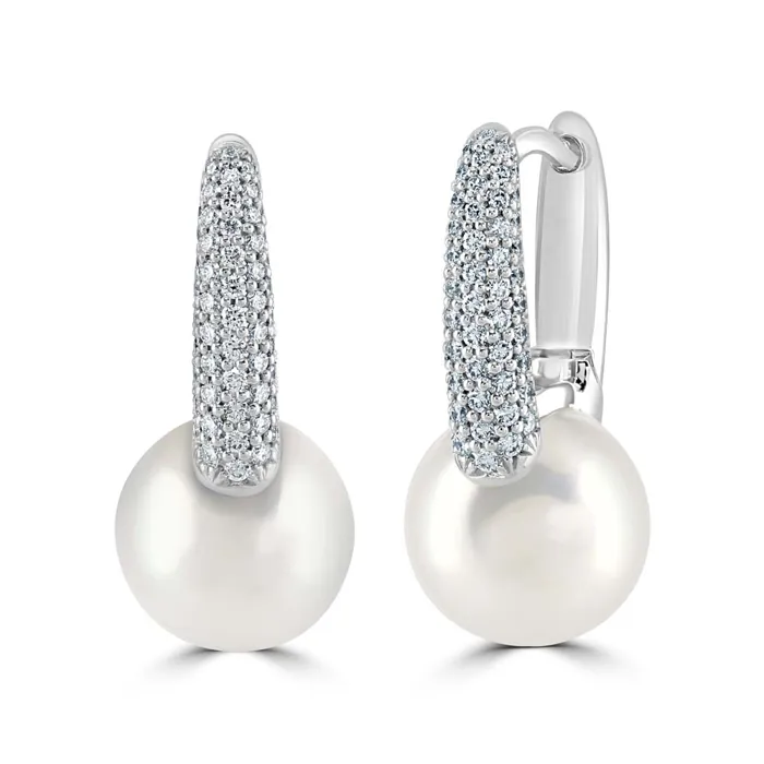 18ct White Gold Akoya Cultured Pearl and Diamond Classic Elegance Earrings