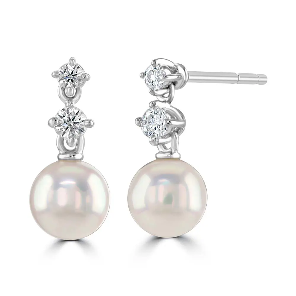 18ct White Gold Akoya Cultured Pearl and Diamond Drop Morning Dew Earrings