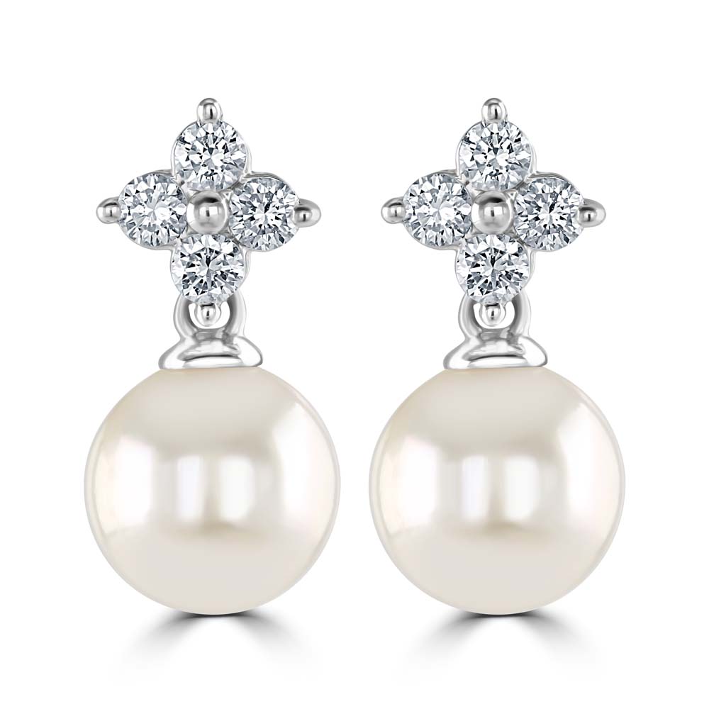 18ct White Gold Akoya Pearl and Diamond Earrings