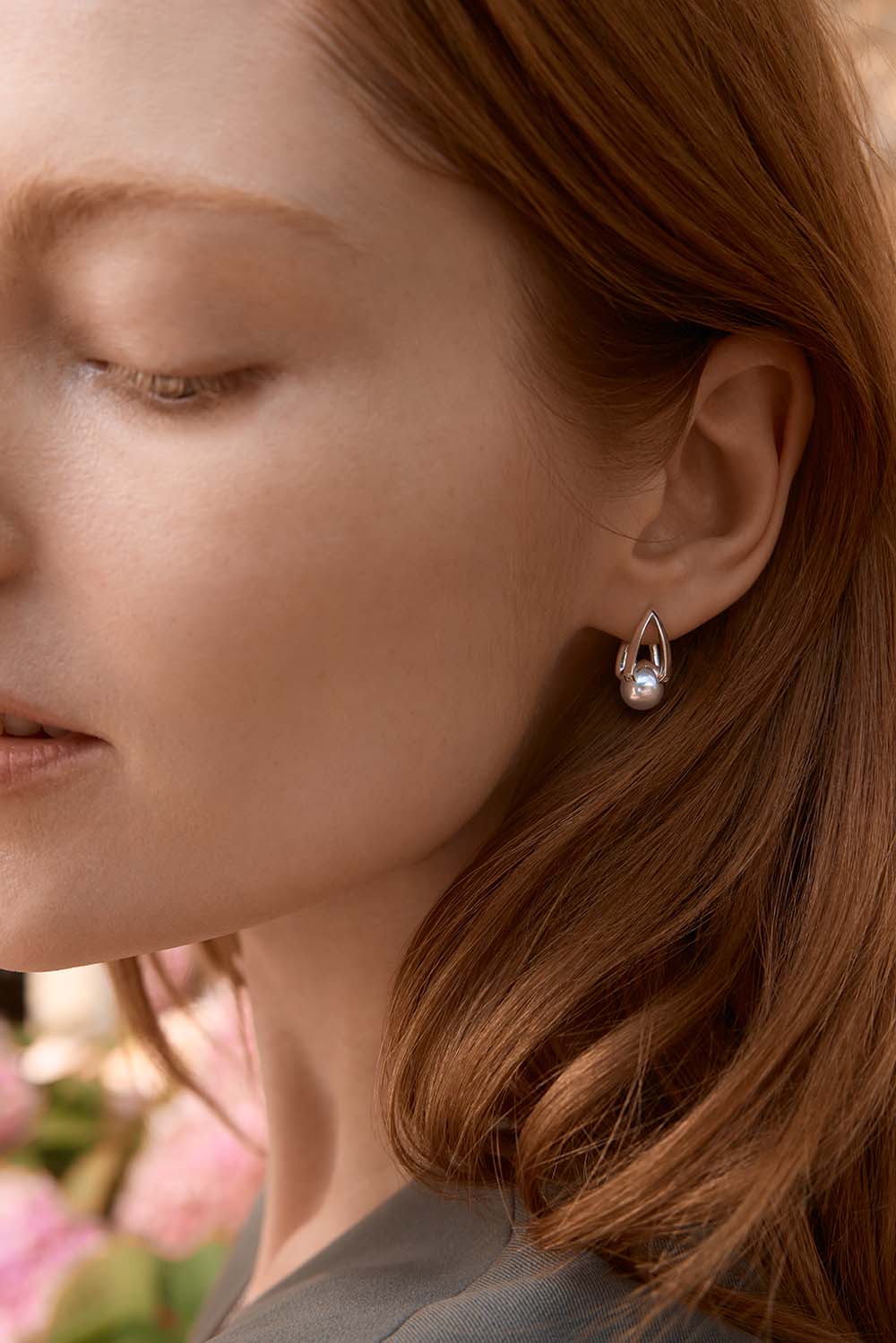 Exquisite 18ct white gold drop earrings from the M Collection by Mikimoto. These stunning earrings each showcase a single Akoya cultured pearl, renowned for its superb lustre and perfect round shape, with an impressive diameter of 7.75mm. The pearls are elegantly set beneath an artistic arrangement of two inverted 'V' shapes, each meticulously adorned with four round brilliant-cut diamonds at their points. This design not only reflects a modern aesthetic but also pays homage to the timeless beauty and precision Mikimoto is celebrated for. These drop earrings are a symbol of sophistication and are sure to elevate any ensemble, making them a must-have addition to your jewellery collection.
