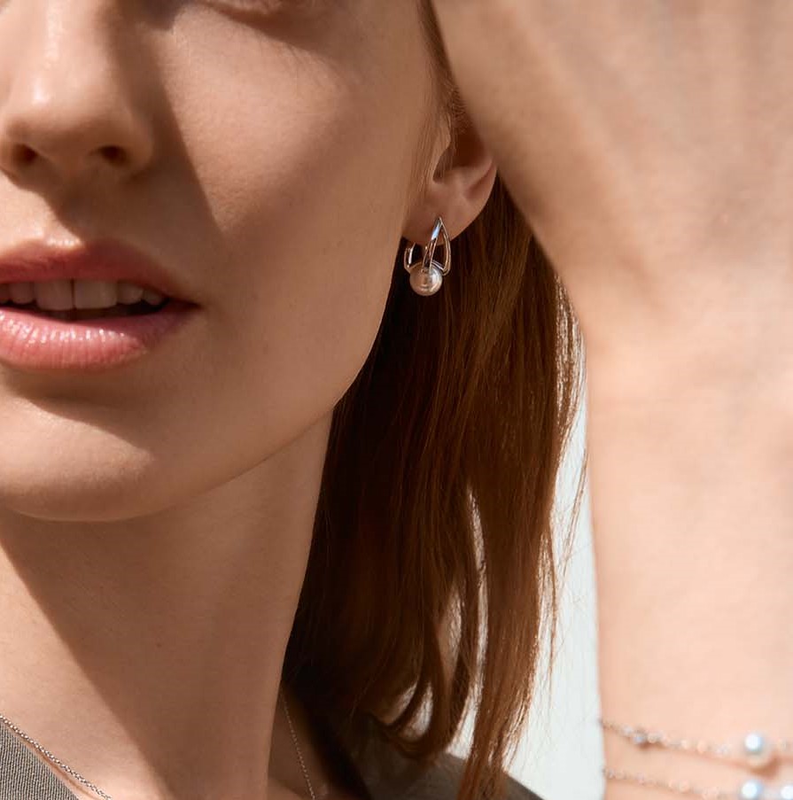 18ct White Gold Akoya Pearl and Diamond M Collection Earrings