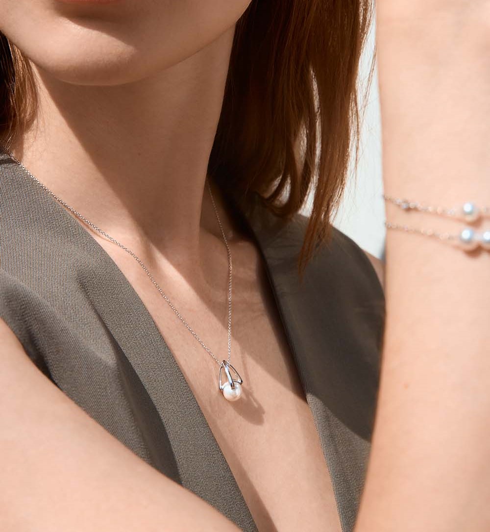 A stunning 18ct white gold pendant from Mikimoto's esteemed M Collection. This exquisite piece features a lustrous Akoya cultured pearl, meticulously chosen for its radiant beauty and impressive diameter of 8.25mm. The pearl is artistically set beneath an elegant design of two upside-down 'V's, symbolizing peaks of elegance and sophistication. Each point of the 'V's is embellished with round brilliant cut diamonds, totalling four diamonds. These diamonds add a subtle sparkle that perfectly complements the pearl's natural sheen, creating a harmonious balance of luxury and grace. The pendant is presented on an 18ct white gold adjustable trace chain, offering versatility with lengths ranging from 50cm to 38cm, ensuring the perfect fit for any neckline or occasion. Crafted with precision and care, this pendant is a standout addition to the M Collection by Mikimoto, reflecting the brand's dedication to quality and timeless design.