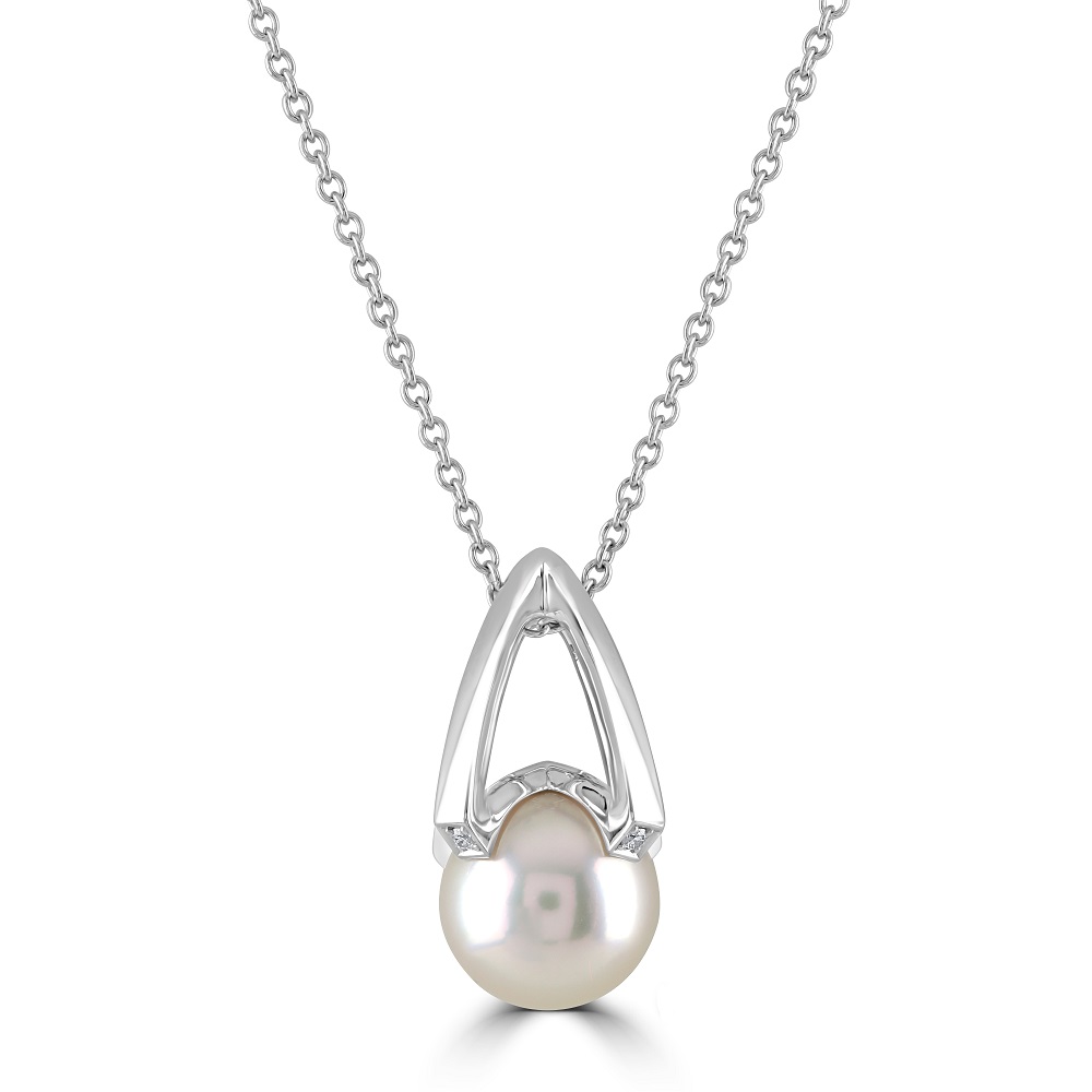 18ct White Gold Akoya Cultured Pearl and Diamond M Collection Pendant