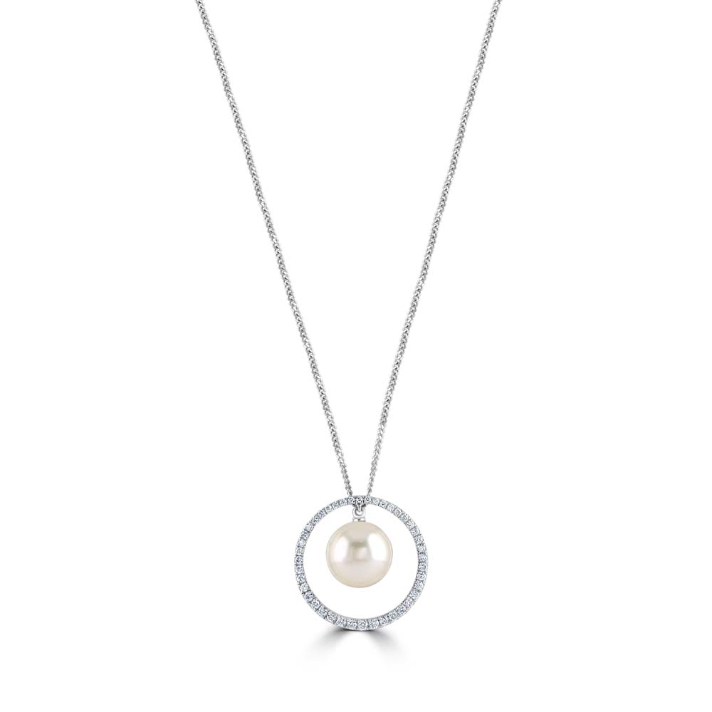 18ct White Gold Akoya Cultured Pearl and Diamond Pendant