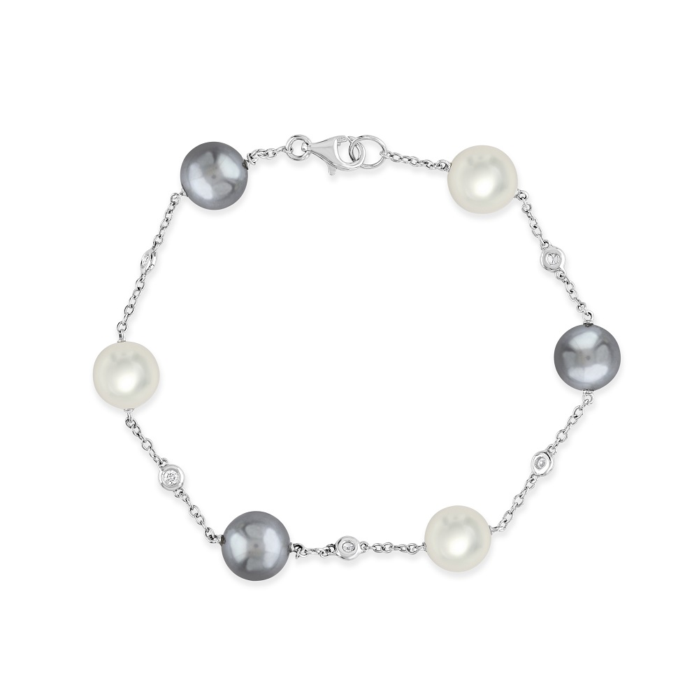 18ct White Gold Akoya Cultured, Tahitian Cultured Pearl and Diamond Bracelet