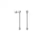 18ct white gold pendant stud earrings featuring 3 round brilliant cut diamonds set in a cylinder shape at the top with a line of chain beneath and a plain cylinder shape at the bottom. With post and butterfly fittings. Part of the Aria range by Fope Gioielli. Aria is made from a new delicate, fine gold mesh chain and is aimed at emerging luxury consumers, tapping into the athleisure fashion trend. Pieces within the Aria collection (earrings and necklaces) have been designed to be mixed and matched in the three gold colourways, featuring gold cylinders set with white or black diamonds, for women and men.