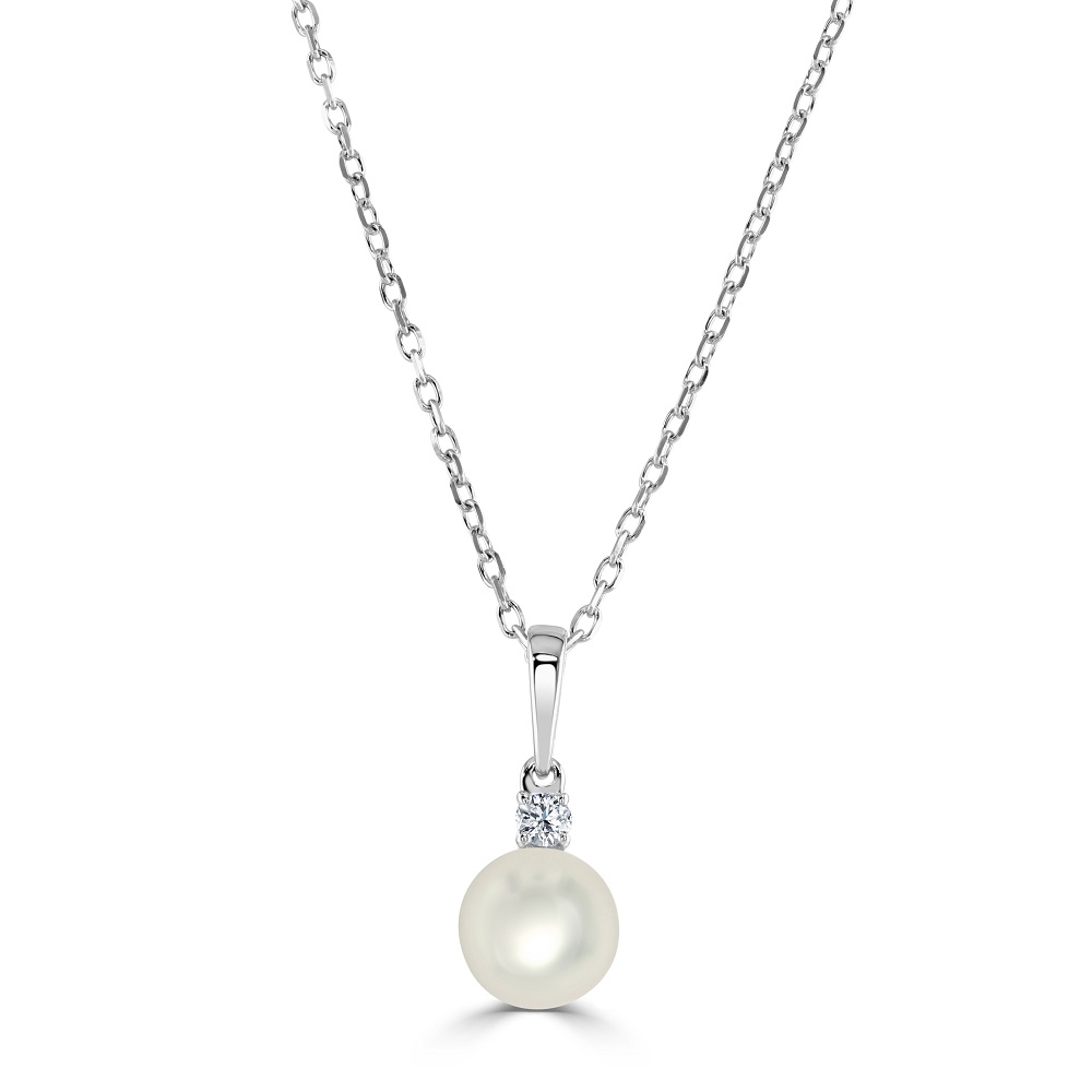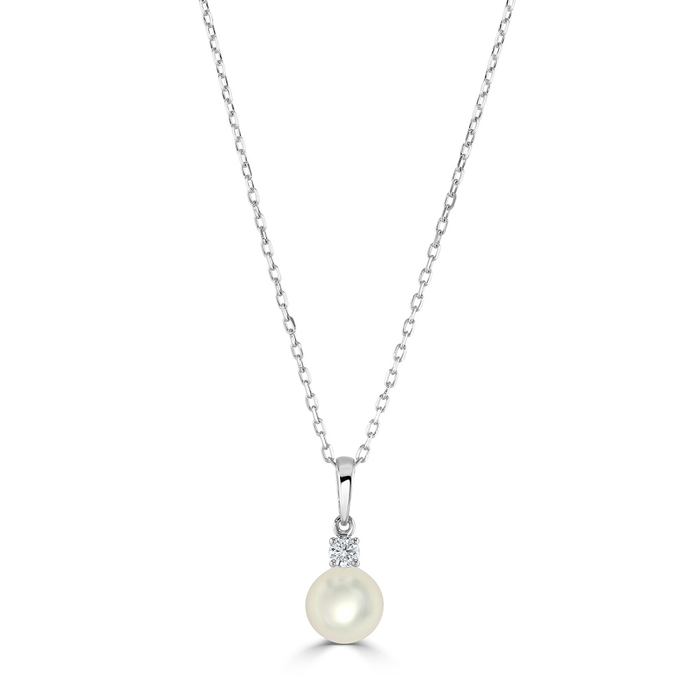 18ct White Gold Akoya Cultured Pearl and Diamond Pendant