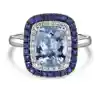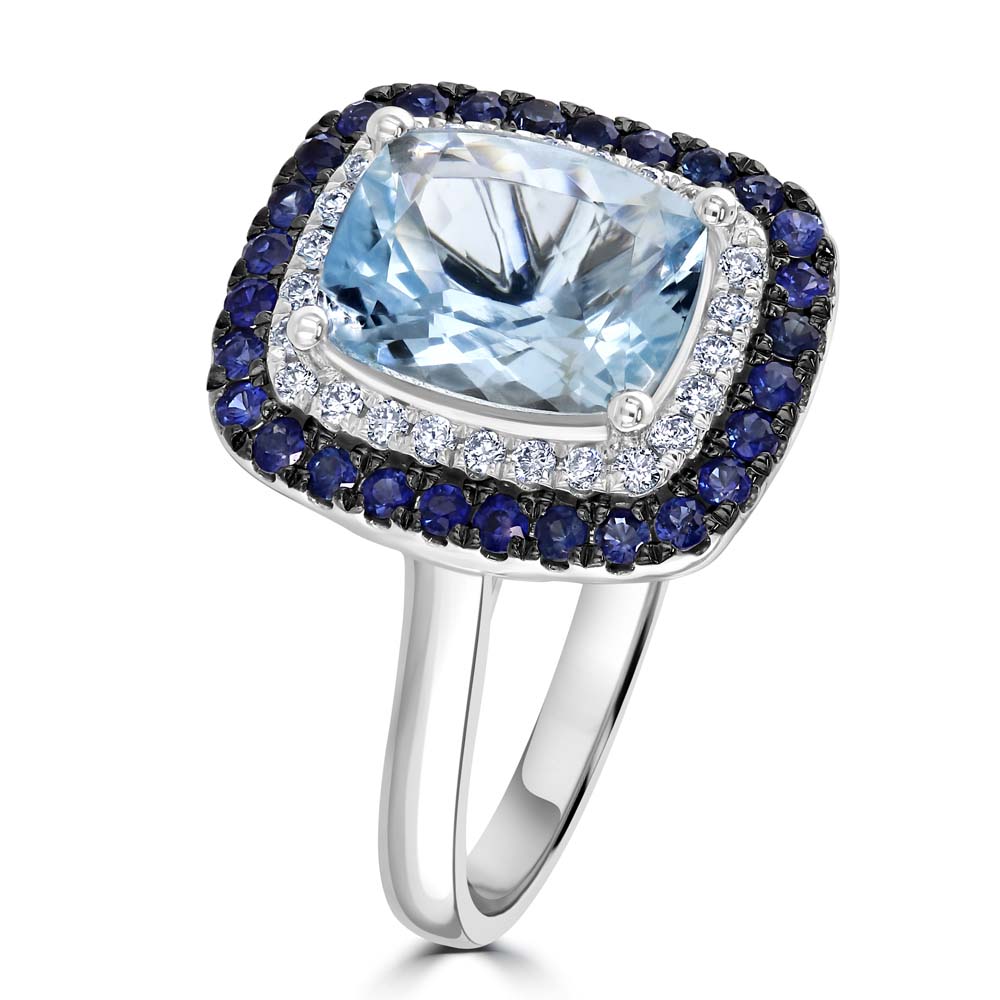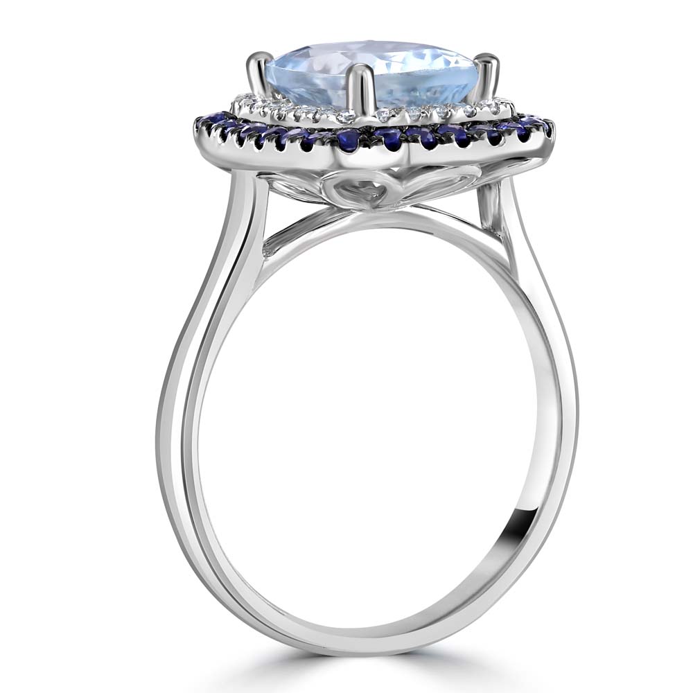 18ct White Gold Aquamarine, Sapphire and Diamond Halo Ring