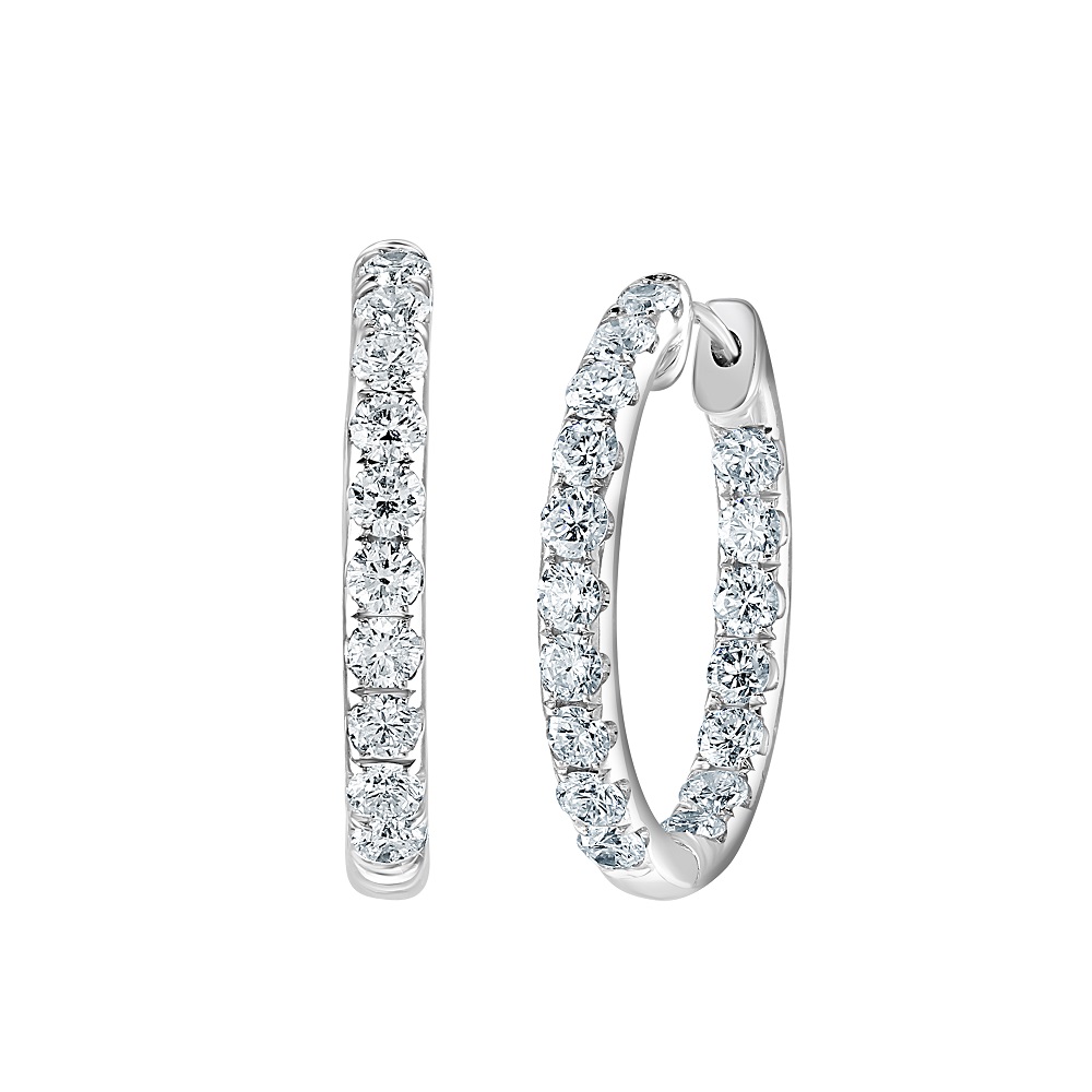 Discover the stunning allure of our 18ct white gold hoop earrings, a luxurious addition to any fine jewellery collection. These elegant hoops feature a sophisticated design with 10 round brilliant cut diamonds meticulously set down the front, and 7 additional diamonds adorning the inside back, ensuring a continuous sparkle from every angle. Each diamond is securely held by a micro-claw setting, showcasing a total diamond weight of 1.00 carat. Crafted from high-quality 18ct white gold, these earrings combine durability with a sleek, polished finish, making them perfect for both special occasions and everyday elegance. Elevate your style with these beautifully designed diamond hoop earrings, which offer a blend of classic charm and modern sophistication.