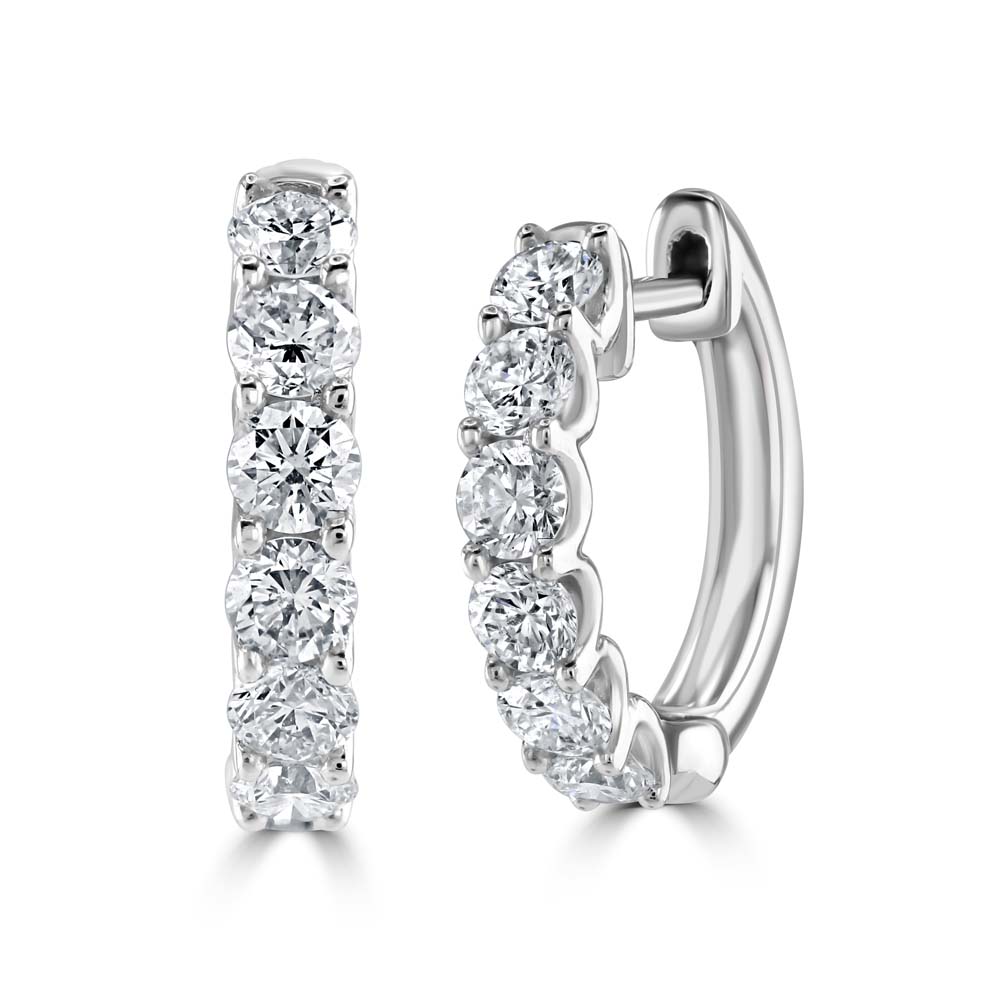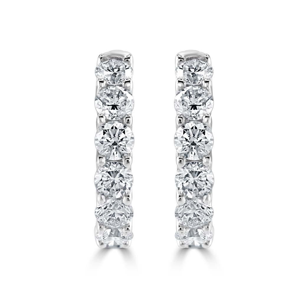 Our timeless 18ct white gold hoop earrings are meticulously crafted to elevate any ensemble. These exquisite earrings feature six round brilliant-cut diamonds, claw-set to enhance their sparkle and brilliance. With a total diamond weight of 1.00 carat, these earrings dazzle with a pure, radiant glow that catches the light beautifully. Crafted from luxurious 18ct white gold, these hoop earrings combine durability with a sleek, polished finish that complements the stunning diamonds perfectly. Ideal for both everyday wear and special occasions, these earrings add a touch of sophistication and glamour to your look. Perfect for those who appreciate the finer things in life, these diamond hoop earrings make a splendid addition to any jewellery collection, offering both style and timeless appeal. Whether as a gift for a loved one or a treat for yourself, these earrings are sure to impress and delight.