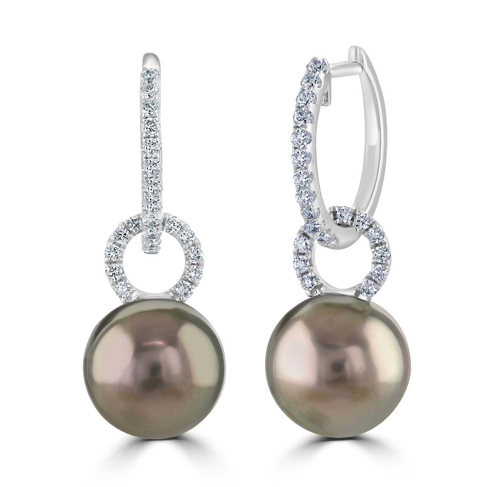18ct White Gold Tahitian Pearl and Diamond Drop Earrings