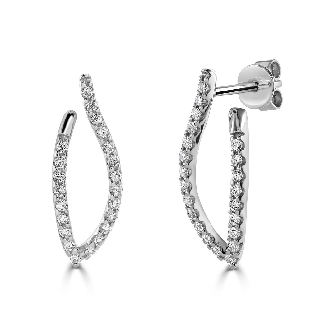Our modern 18ct white gold stud earrings feature uniquely designed wavy hoops set with sparkling diamonds. These exquisite earrings boast a total diamond weight of 0.33ct, ensuring a radiant and eye-catching display of luxury and elegance.