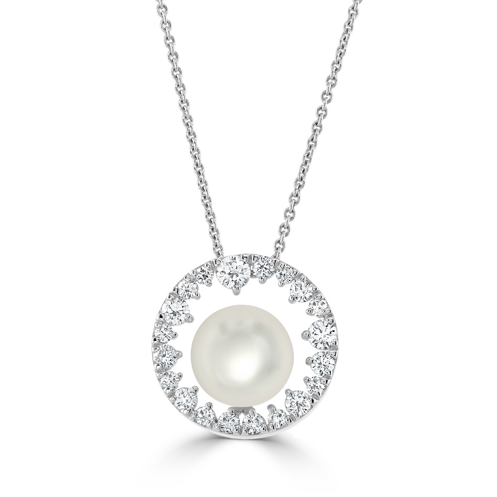 18ct White Gold Akoya Cultured Pearl and Diamond Pendant