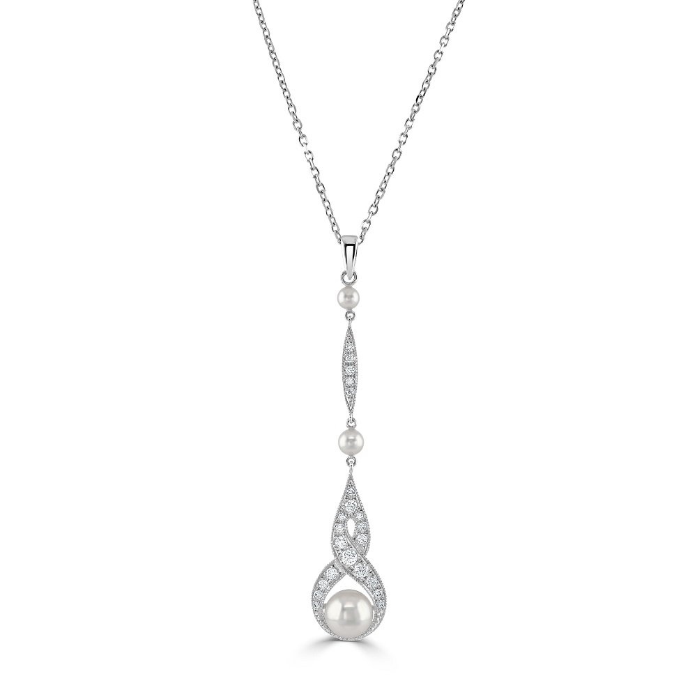 18ct White Gold Akoya Cultured Pearl and Diamond Pendant