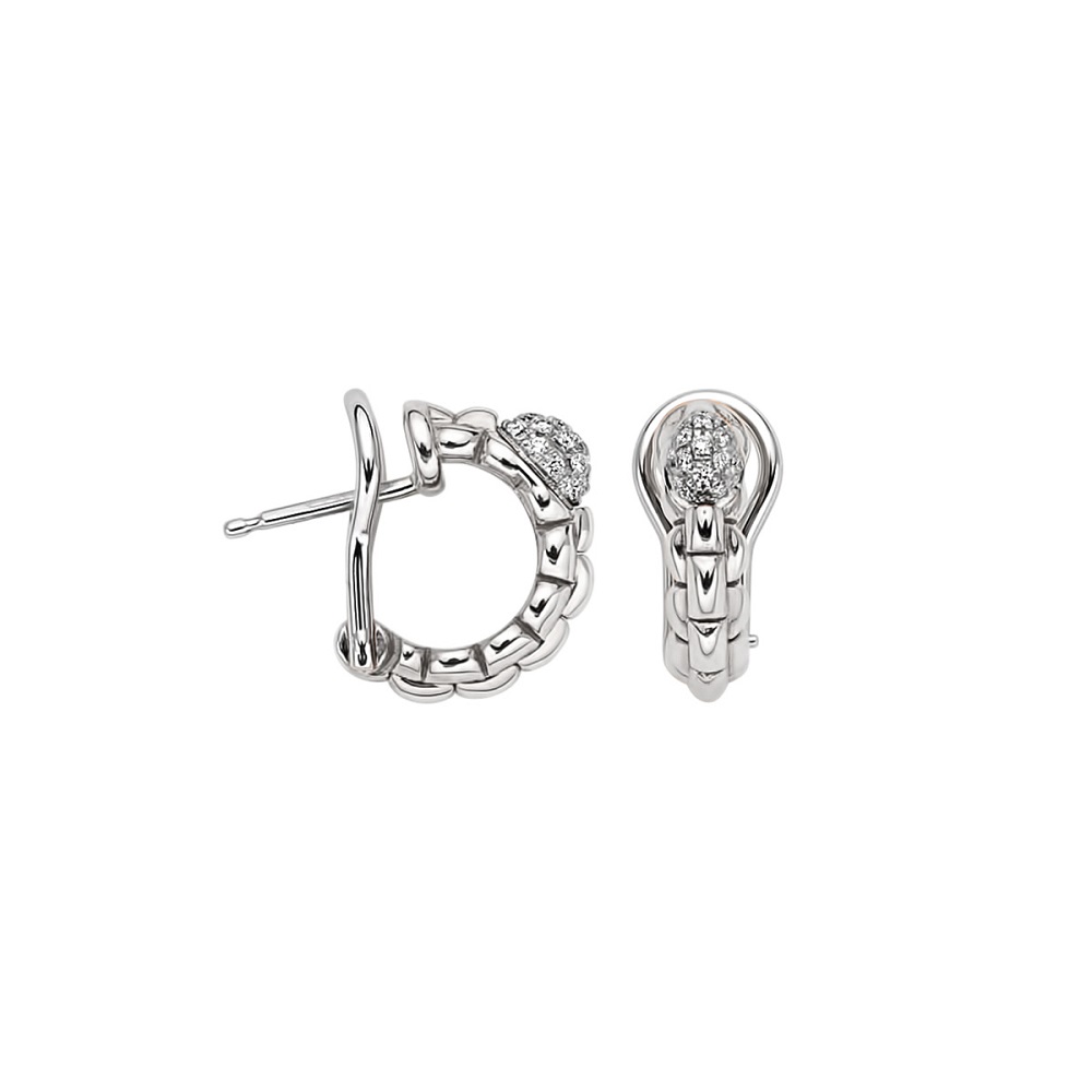 These lovely 18ct white gold Flex'It Eka rope style hoop earrings have an oval shaped section at the top with pavé set round brilliant cut diamonds. By Fope Gioielli, Italy.