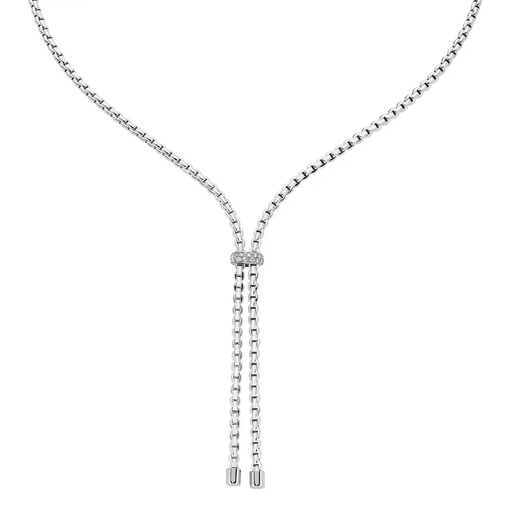 In Fope’s necklaces, the Novecento link takes many forms: round or flat, varying in thickness, it is enriched with circlets and gold elements, and even with diamonds. The variety of models ranges from the choker to a long necklace and lariat necklace. Together with matching bracelets, rings and necklaces, these gold necklaces are perfect for any occasion. Flex’it is the brand’s signature: if Fope jewellery is known the world over, it is because of the mesh that is made flexible by a patented system of tiny 18-carat gold springs, which create original styles and fits.