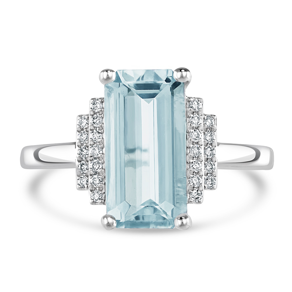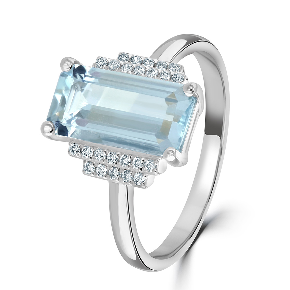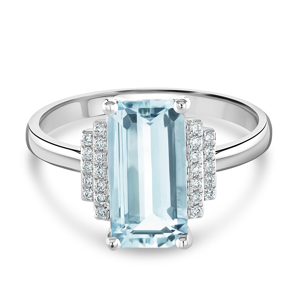 18ct White Gold Aquamarine and Diamond Engagement Ring