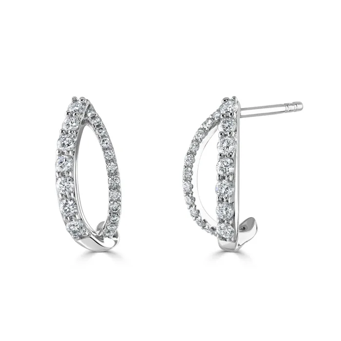 Crafted from the finest 18ct white gold, these earrings feature a modern, open marquise design that adds a touch of sophisticated flair to any outfit. The high-quality diamonds are expertly arranged to maximize their brilliance and shine, making these earrings not only a statement of style but also a showcase of craftsmanship.