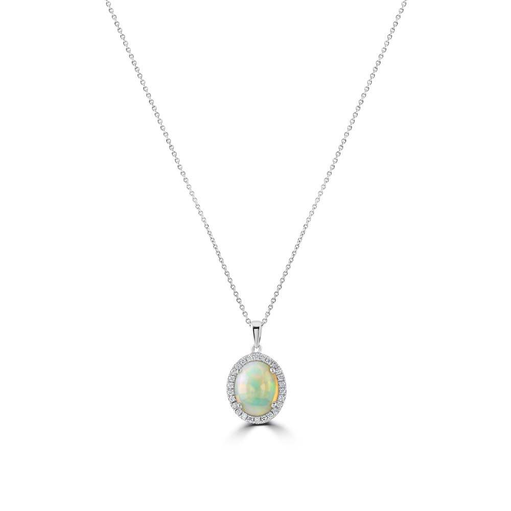 18ct White Gold Opal and Diamond Halo Pendant