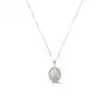 This 18ct white gold pendant that radiates unmatched elegance and sophistication. At the heart of this stunning piece lies a mesmerizing oval-cut opal, securely held in place by four claws. The opal's enchanting play of colour is accentuated by a surrounding cluster of 26 round brilliant-cut diamonds, each meticulously set to create a halo that enhances the opal's natural beauty and allure. Completing this magnificent piece is an 18ct white gold 18-inch trace chain, which features a convertible design allowing for adjustment to a 17-inch length. This versatility ensures the pendant can be perfectly positioned to suit various necklines and outfits, making it an ideal accessory for both everyday elegance and special occasion.