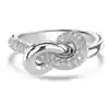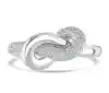 Introducing our sophisticated 18ct white gold knot ring, a symbol of endless elegance intricately crafted for those who cherish unique design. This exquisite ring features a knot motif, half pavé set with sparkling round brilliant cut diamonds that total 0.58 carats. The design represents unbreakable bonds and is enhanced by the brilliant sparkle of meticulously placed diamonds, adding a touch of luxury and timeless appeal. Crafted from premium 18ct white gold, this ring offers a sleek and polished finish that enhances its sophisticated silhouette. Perfect for an engagement, anniversary, or as a meaningful gift, this knot ring is a stunning choice for anyone seeking a piece that combines classic symbolism with contemporary style.