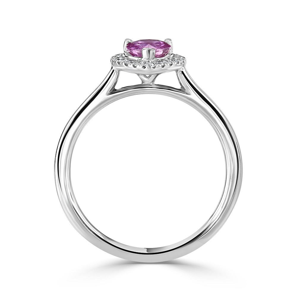 18ct White Gold Pink Sapphire and Diamond Halo Engagement Ring