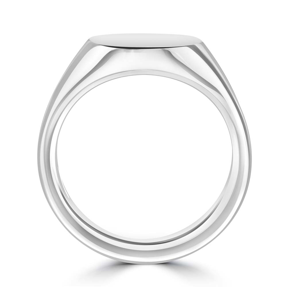 A classic 18ct white gold oval shaped signet ring, ideal for hand engraving. Suitable for monograms, family crest or a bespoke design that is unique to you. Like many of our rings this signet has been made and hand finished in the UK. Each of our signet rings are beautifully presented in a gift box with the wax impression and a stick of sealing wax, so you can create your own wax seals. Other sizes and variations are available, please contact store for more information.