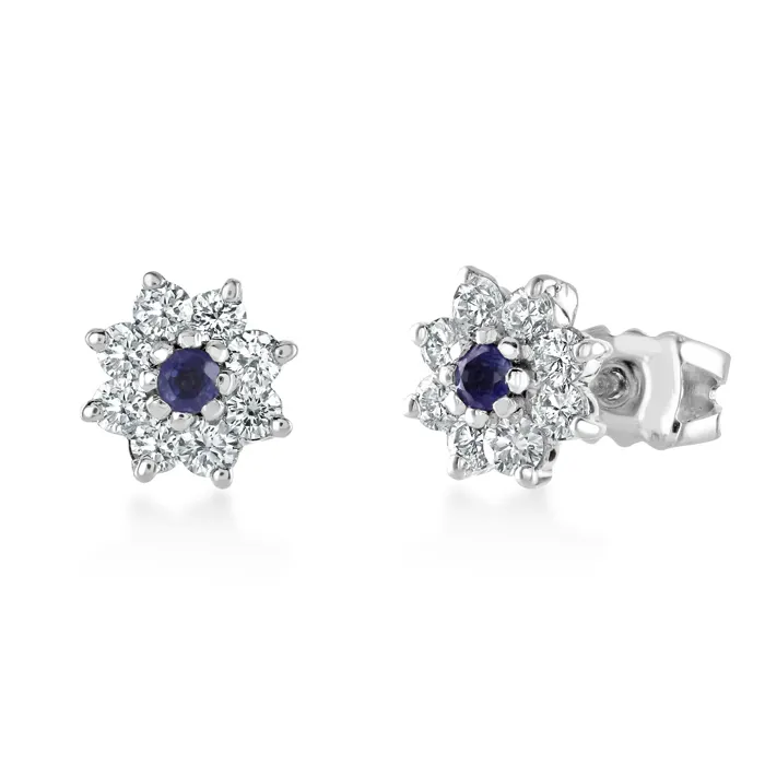 18ct White Gold Sapphire and Diamond Flower Earrings