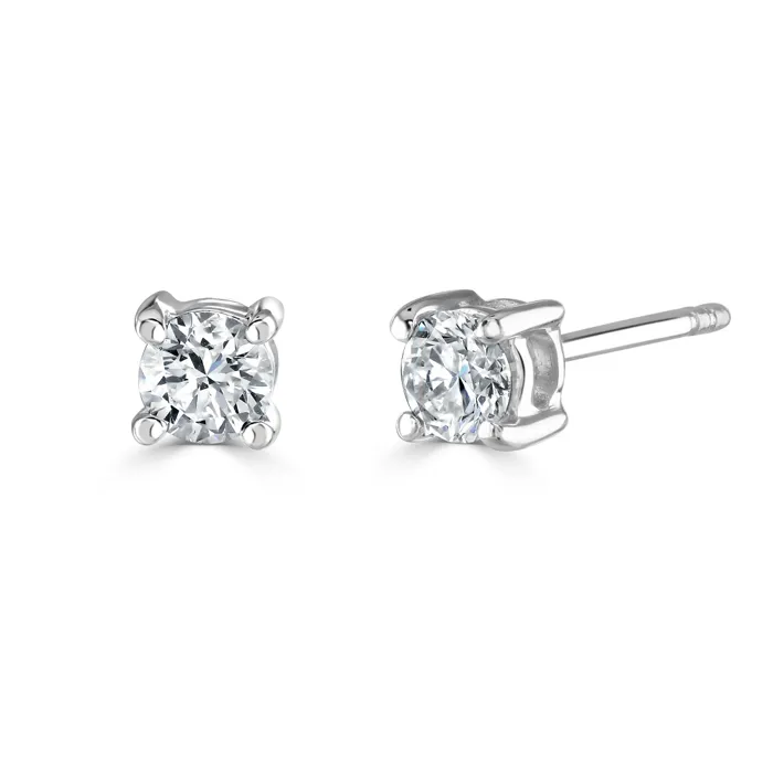 Discover the timeless elegance of our 18ct white gold stud earrings, each featuring a single round brilliant cut diamond exquisitely held in a four-claw setting. These classic studs highlight the pristine clarity and radiant sparkle of the diamonds, designed to catch and reflect light with every movement, ensuring a dazzling display.