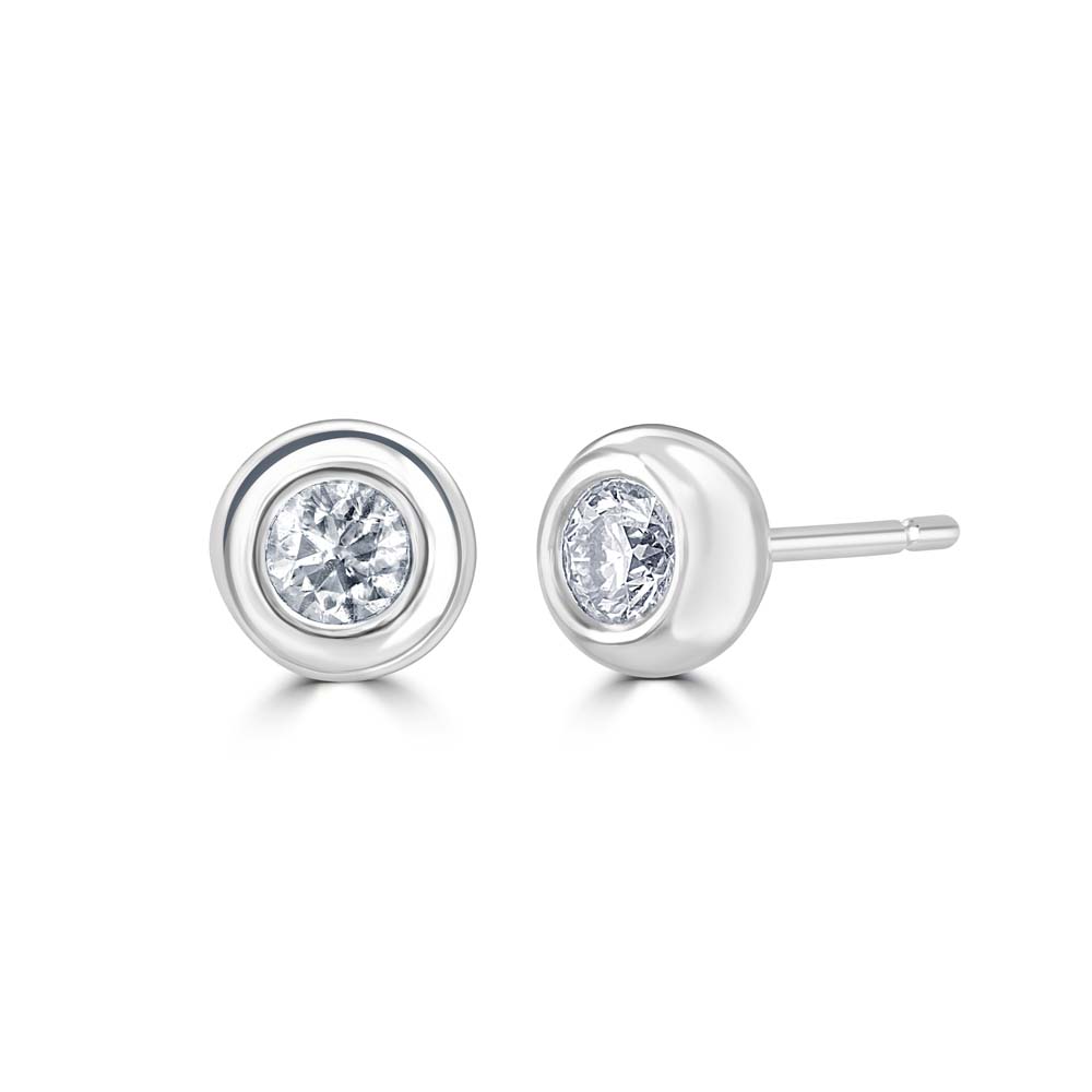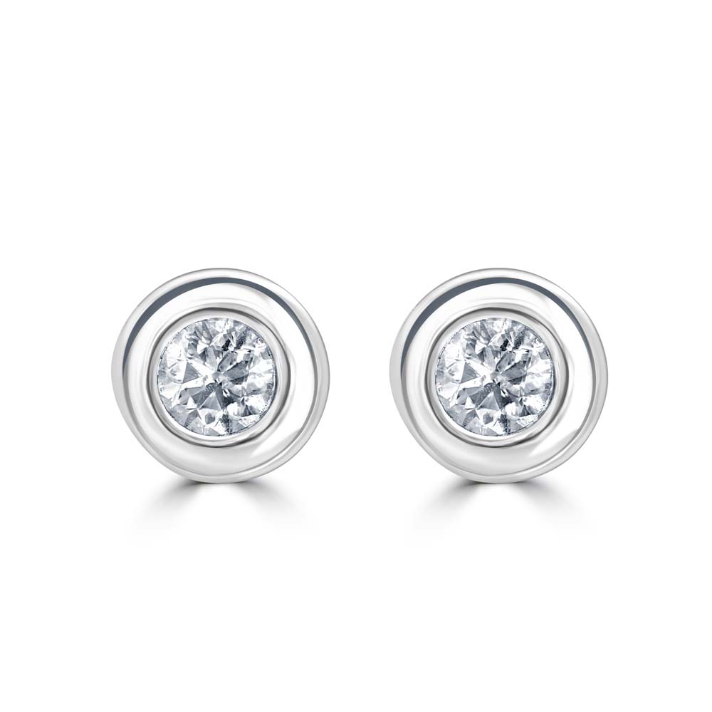 Experience the refined elegance of our 18ct white gold single stone diamond stud earrings. Each earring features a dazzling round diamond, securely set in a sleek rubover setting, with a total diamond weight of 0.50ct. The minimalist design highlights the diamond's brilliance, creating a timeless and versatile piece perfect for any occasion. Crafted in lustrous white gold and fitted with post and butterfly clasps, these earrings offer both comfort and a secure fit for pierced ears. Add a touch of sophistication to your jewellery collection with these exquisite white gold diamond stud earrings.