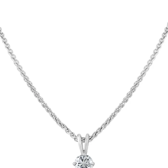 An 18ct white gold pendant featuring a single, dazzling round brilliant-cut diamond meticulously set in a four-claw setting. This exquisite design ensures the diamond is the focal point, allowing it to catch the light beautifully and sparkle with every movement. This gorgeous pendant is suspended from an 18ct white gold Spiga chain. Crafted with precision and care, this pendant is a testament to timeless design and luxury. It's an ideal choice for those seeking a piece of jewellery that combines classic beauty with a touch of contemporary sophistication, perfect for any occasion.