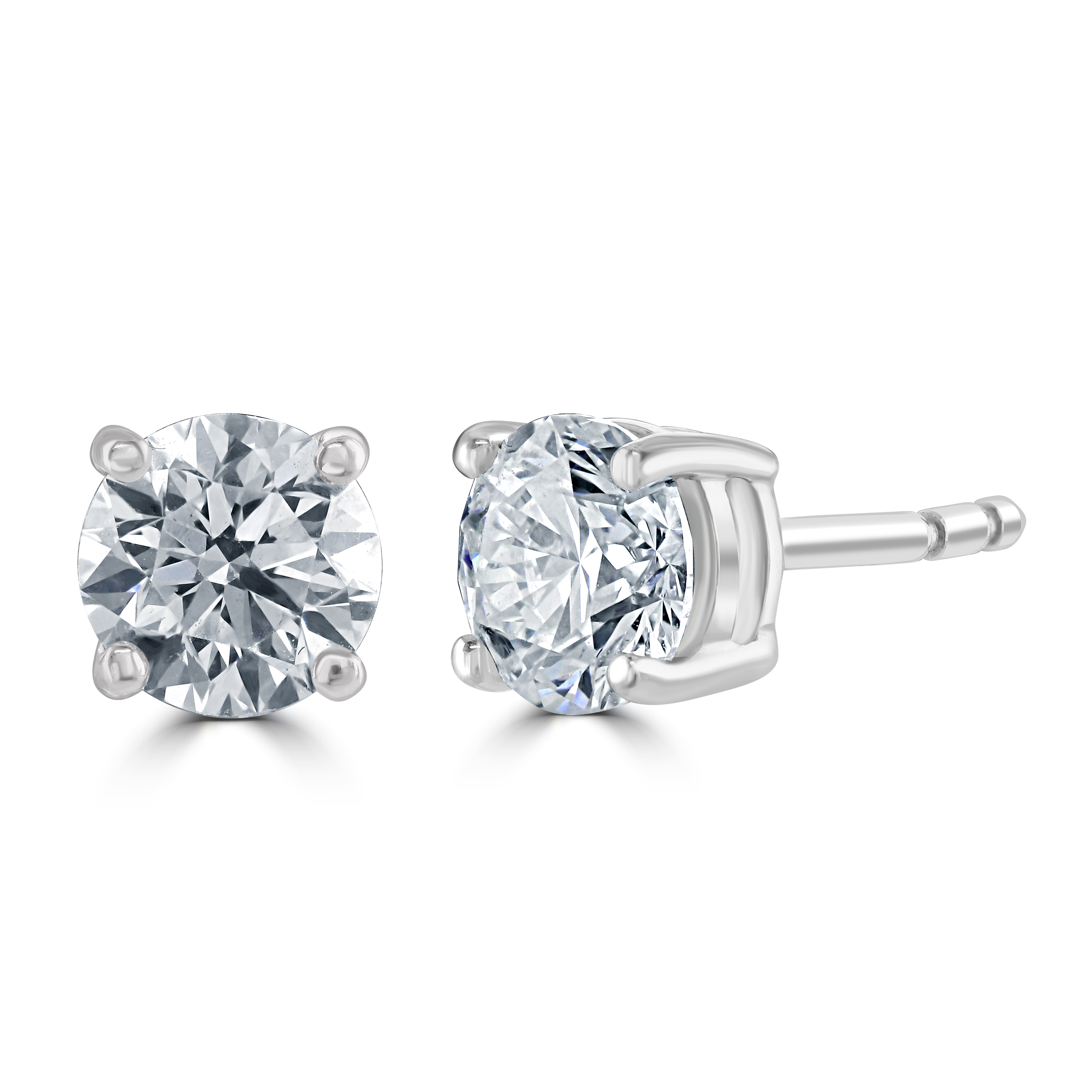 A pair of timeless white gold stud earrings, each meticulously four-claw set with a single round brilliant cut diamond. These exquisite earrings showcase a total diamond weight of 1.21ct, radiating brilliance and sophistication. Each diamond has been carefully selected for its clarity, cut, and luminosity, ensuring that they catch the light and eyes of admirers from every angle.