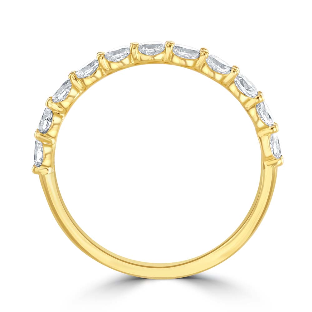 A beautiful 18ct yellow gold half eternity ring, showcasing eleven claw set oval cut diamonds. With a total diamond weight of 0.44ct, this stunning piece exudes elegance and charm, making it a perfect choice for celebrating special moments and milestones.