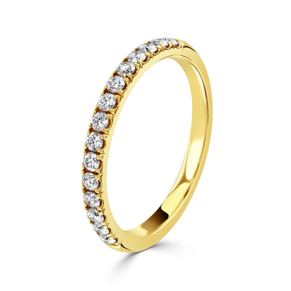 Elevate your jewellery ensemble with our exquisite 18ct yellow gold half eternity ring, meticulously crafted to showcase a series of fifteen round brilliant-cut diamonds, each securely held in a small claw setting. This stunning ring totals 0.37 carats of diamonds, radiating exceptional brilliance and clarity that captures the essence of timeless elegance.