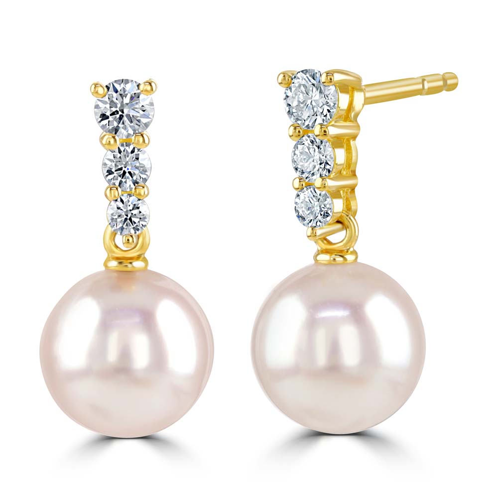 18ct White Gold Akoya Cultured Pearl & Diamond Drop Morning Dew Earrings